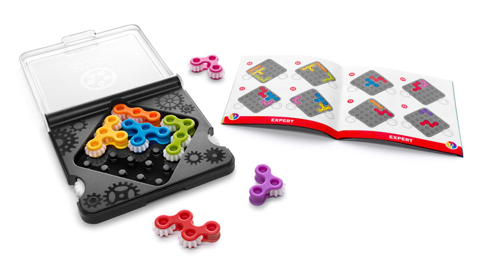 Challenge your logic, planning, and problem-solving skills with IQ Gears, a one-player, travel-friendly logic puzzle game. With a compact board, transparent lid, and 7 interlocking gear pieces, this puzzle is as portable as it is powerful.